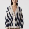 Tricot fin avec une structure de côtes plates en fil italien fin avec une touche douce: cardigan avec demi-manches, ligne en V et bordure de bouton continu.