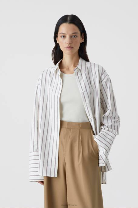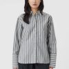 Fabriqué en coton biologique pur: chemisier de chemise en popline portugaise à motif rayé. Ajustement régulier avec des manches longues et des poignets larges. Bordeau de bouton continu avec boutons de perles et ourlet légèrement incurvé.