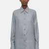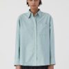 Ce chemisier de chemise détendu est en denim très léger avec un lavage concolore – 100% en coton biologique. Le long chemisier a une fente arrière dissimulée, des épaules qui se chevauchent, une bordure boutonnée cachée et un ourlet incurvé.