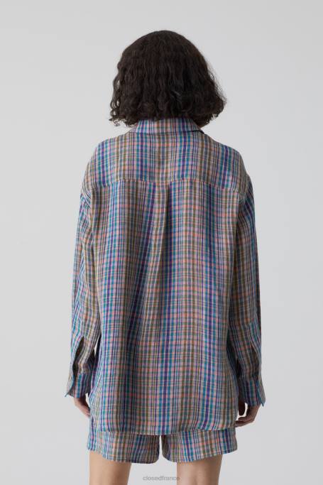 CLOSED France | CLOSED chemise en lin à carreaux femmes T0V01606 bleu océanique