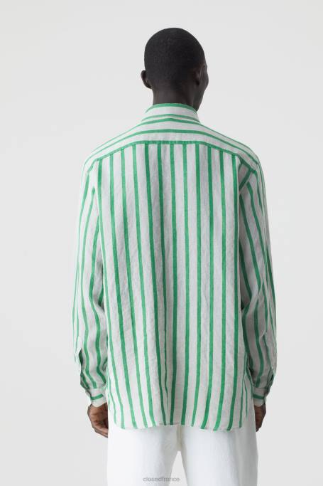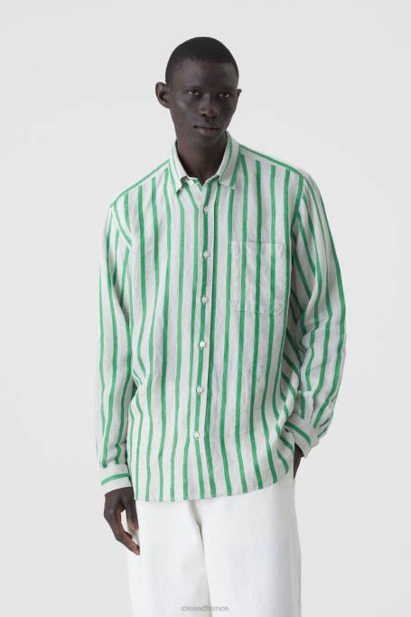 CLOSED France | CLOSED chemise en lin, chemise hommes T0V02085 vert botanique