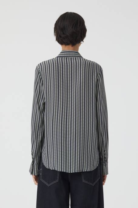 Ce chemisier est en crêpe à viscose léger avec une impression graphique. Il a une chute douce, une bordure de bouton, la manche se termine par des poignets et un ourlet incurvé.