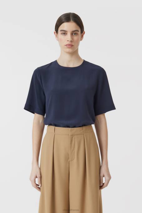 CLOSED France | CLOSED Chemisier en soie à manches courtes femmes T0V01583 nuit sombre