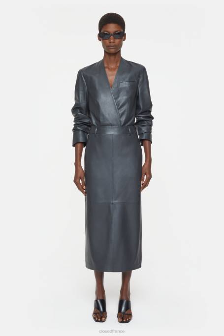 CLOSED France | CLOSED jupe en cuir nappa femmes T0V0616 charbon de bois
