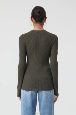 CLOSED France | CLOSED Rib Tricot Shirt femmes T0V0415 vert de l’armée