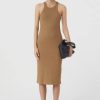 Slim Fit en coton biologique avec teneur en extension: robe côtelée fine avec bretelles étroites, décolleté rond et ourlet droit.