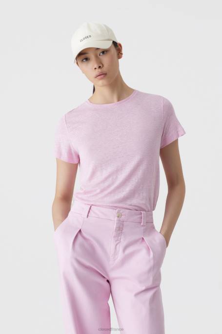 CLOSED France | CLOSED t-shirt en lin femmes T0V01645 dahlia rose